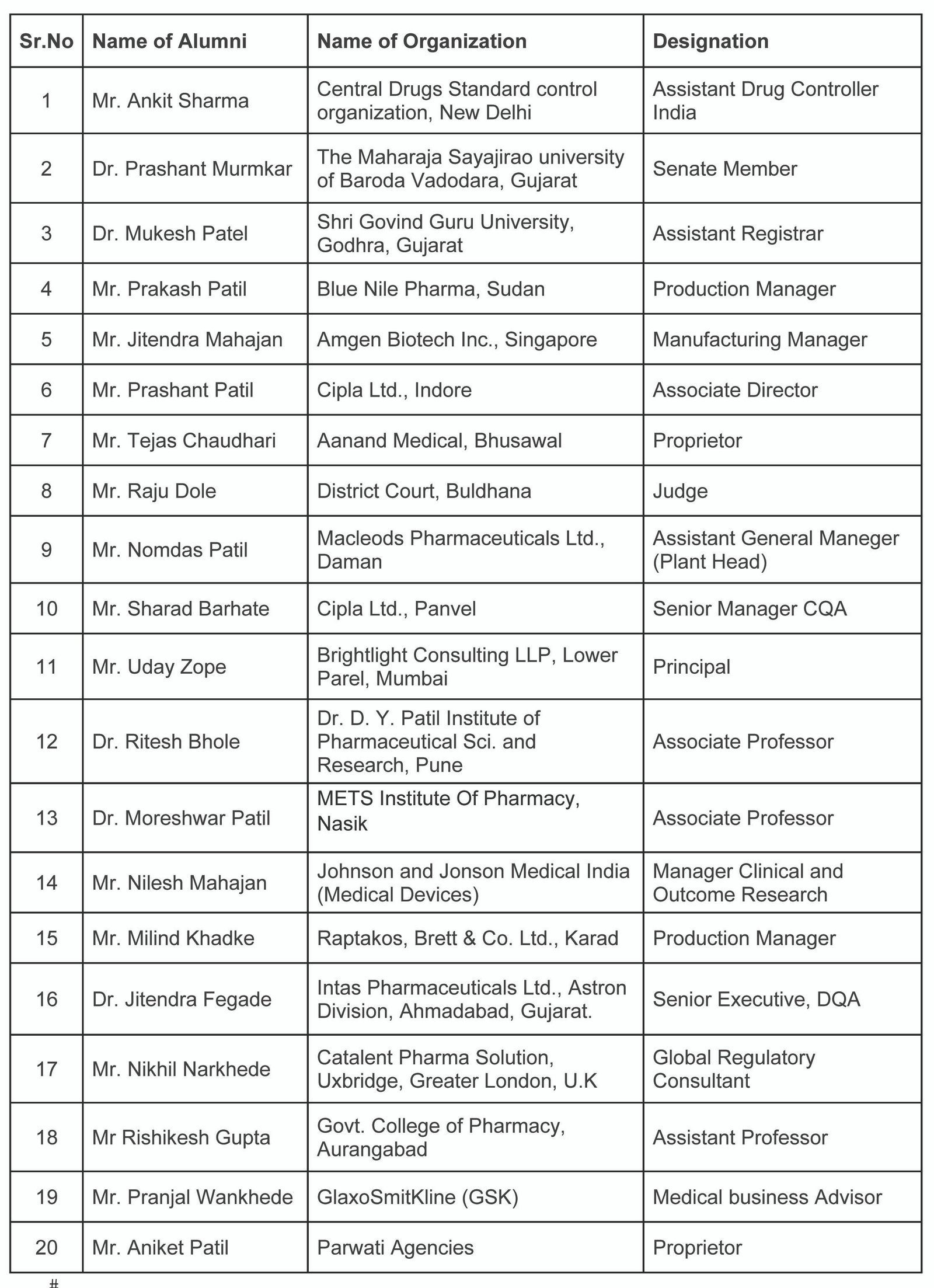 The Hon’ble Lokasevak Madhukarrao Chaudhari College of Pharmacy, Faizpur’s alumni network is one of the strongest of any pharmacy school, representing maximum practicing pharmacists. Our alumni are an integral component of the college’s success. Alumni mentor, coach, guest lectures and identify employment opportunities for fellow alumni as well as students. Their generous support is essential to maintaining the outstanding education and clinical preparation that the college provides to current students, and is critical to the research and programs that form the future of the field of pharmacy.