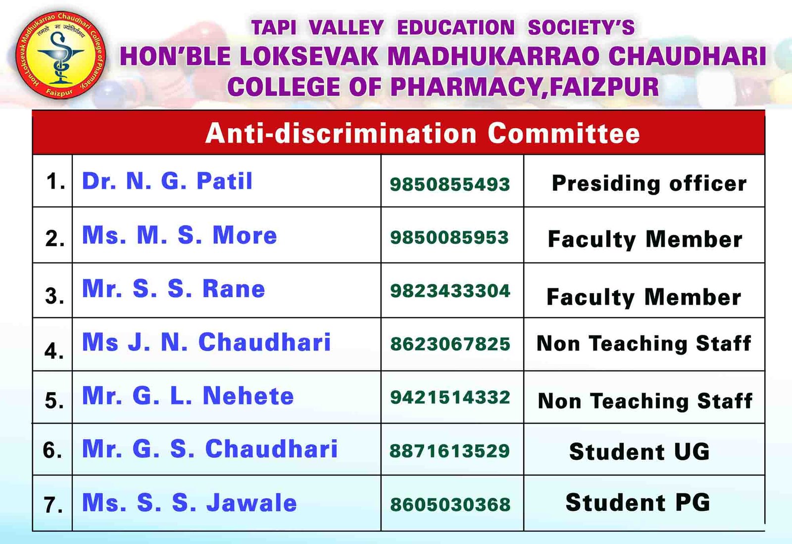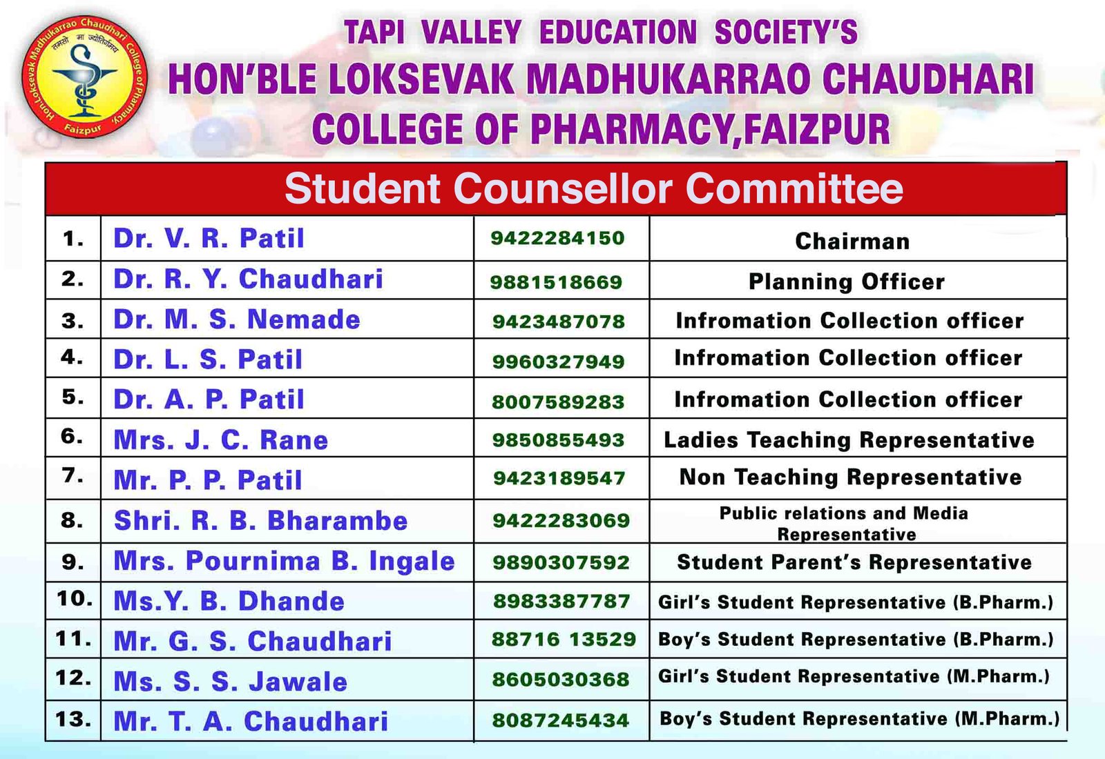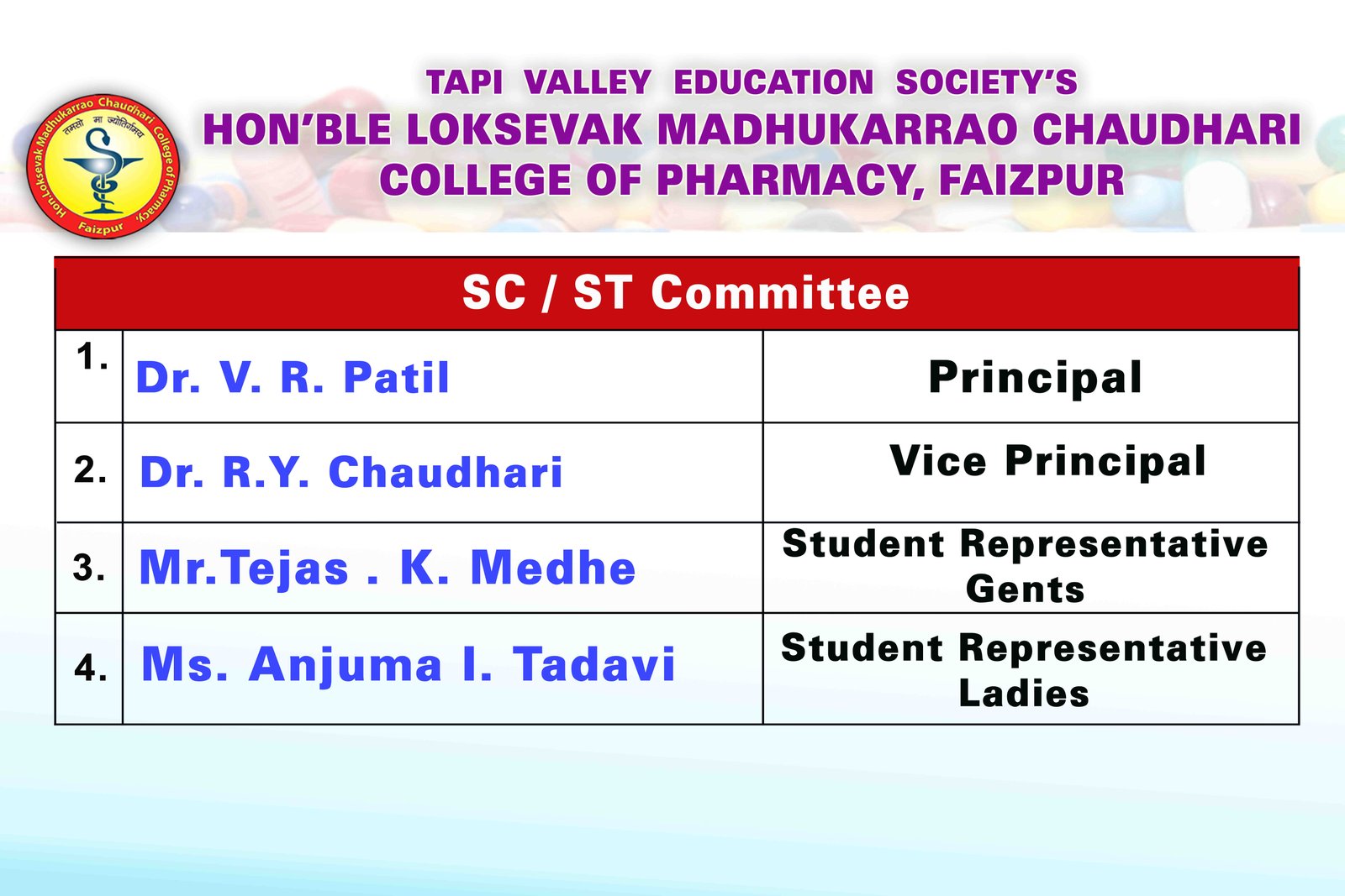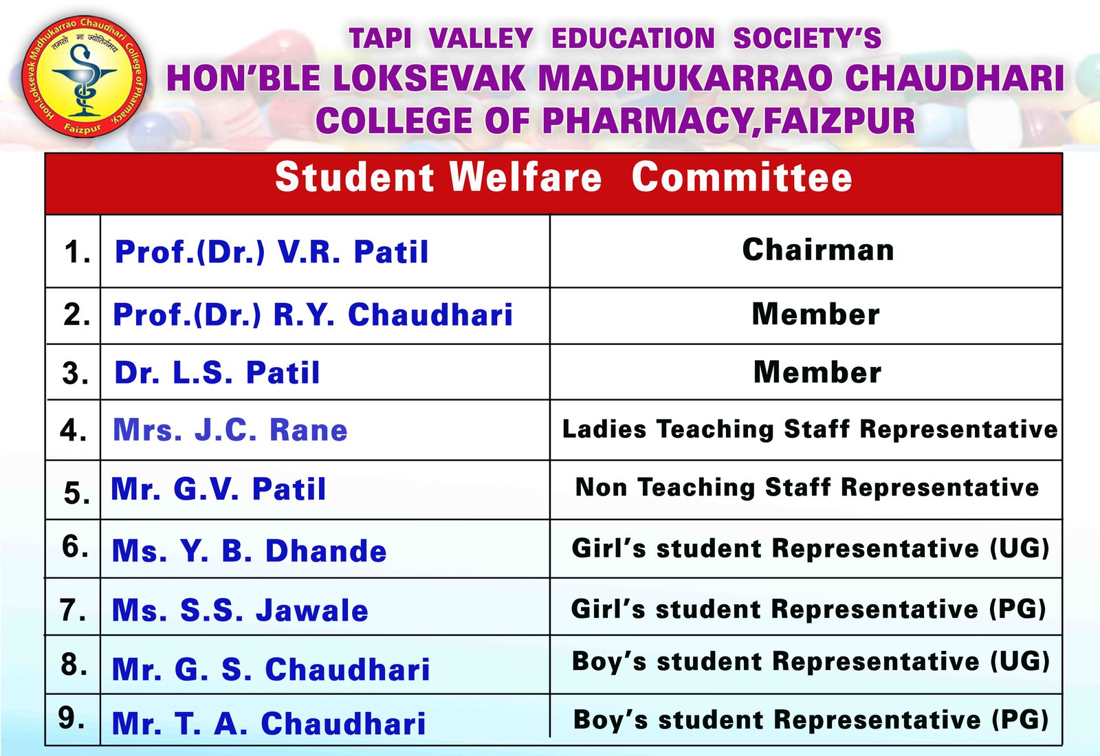 HON'BLE LOKSEVAK MADHUKARRAO CHAUDHARI COLLEGE OF PHARMACY, FAIZPUR