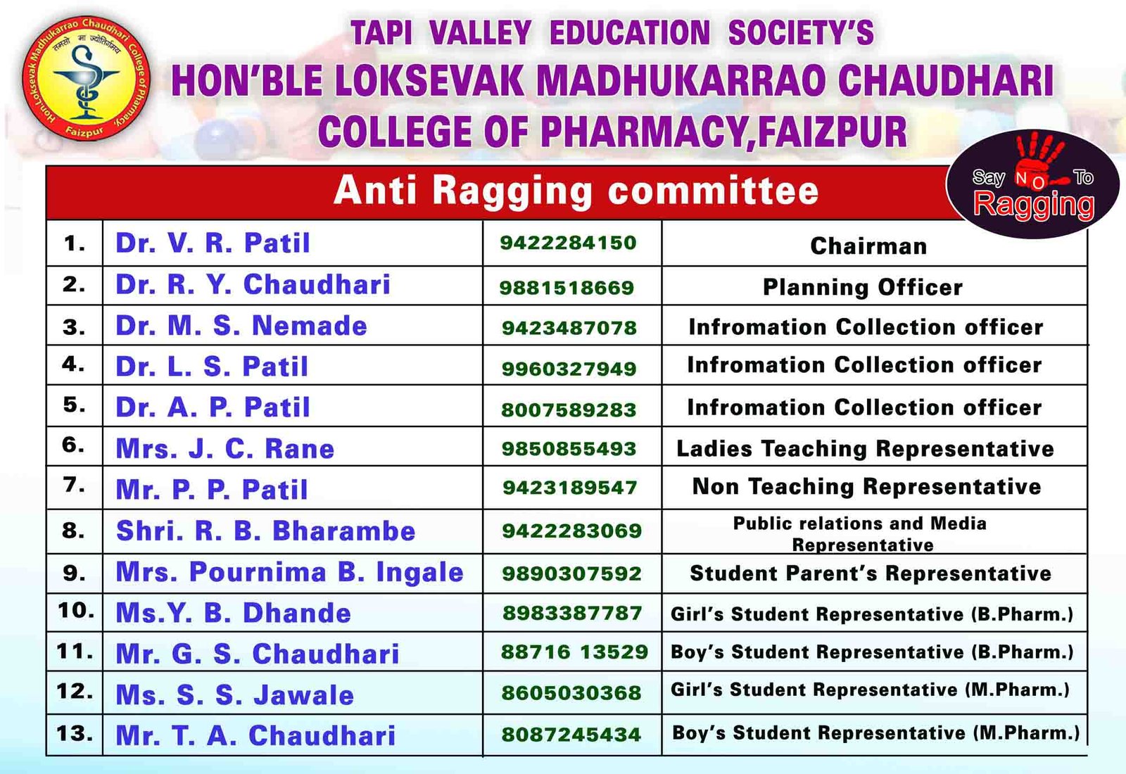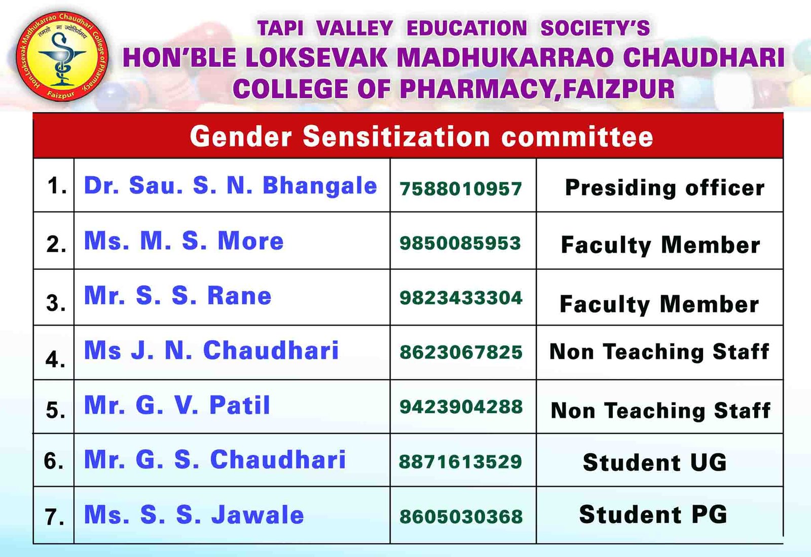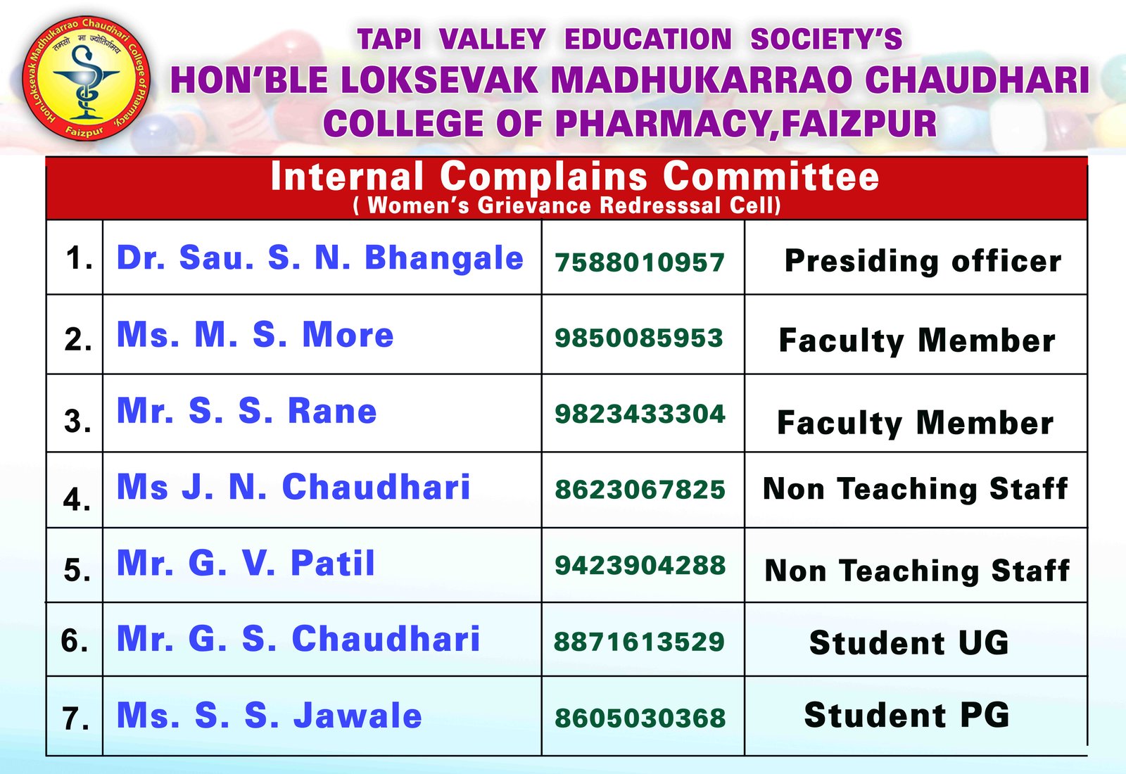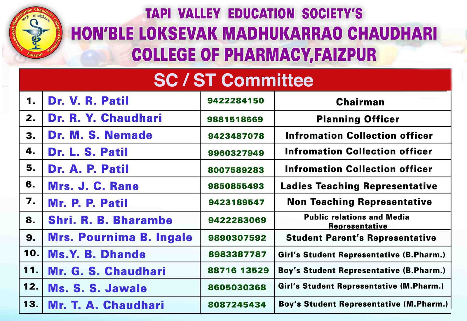 HON'BLE LOKSEVAK MADHUKARRAO CHAUDHARI COLLEGE OF PHARMACY, FAIZPUR